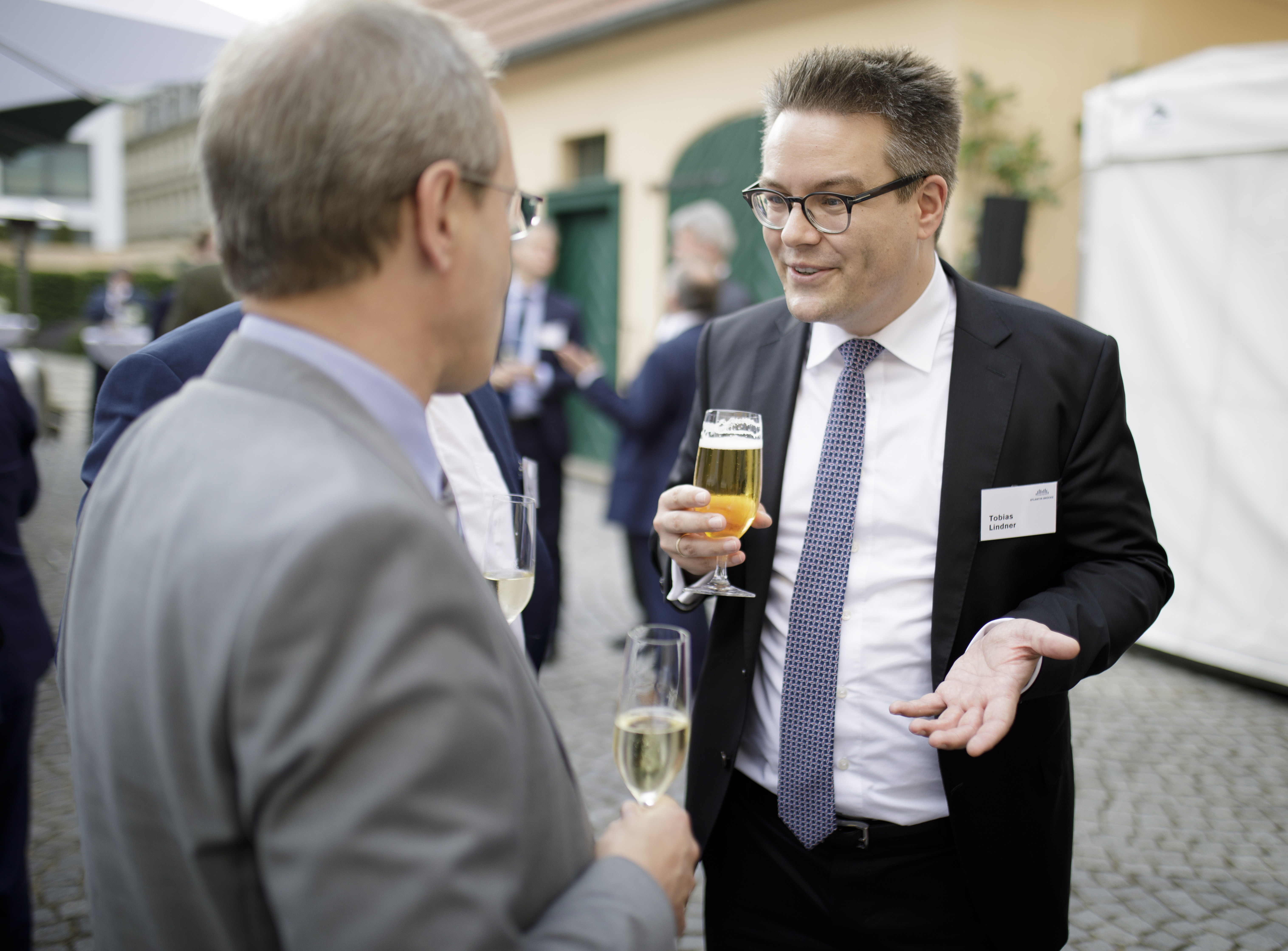 Beim anschließenden Get Together der Mitglieder im Garten des Magnus-Hauses war US-Botschafter Richard Grenell Ehrengast. Der Botschafter sprach ebenfalls über den Handelskonflikt, aber auch über die gemeinsame Zukunft in der NATO und seine Zeit bei den Vereinten Nationen.