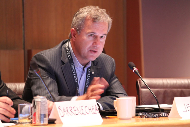 Zum Thema „Open Government“ haben sich die Konferenzteilnehmer mit dem Potential von Social Media-Tools und neuen IT-Konzepten für die Politik beschäftigt. Besonders zugespitzt wurde das Thema von Mark Barrenechea, CEO von OpenText, der die Frage aufwarf „Wie entwickelt man die Regierung zur App?“ Weitere Beiträge kamen von Scott Brison, MP, Corinne Charette, Chief Information Officer, Government of Canada, Jennifer Stoddart, Privacy Commissioner of Canada, und Matthi Bolte, MdL (Die Grünen).