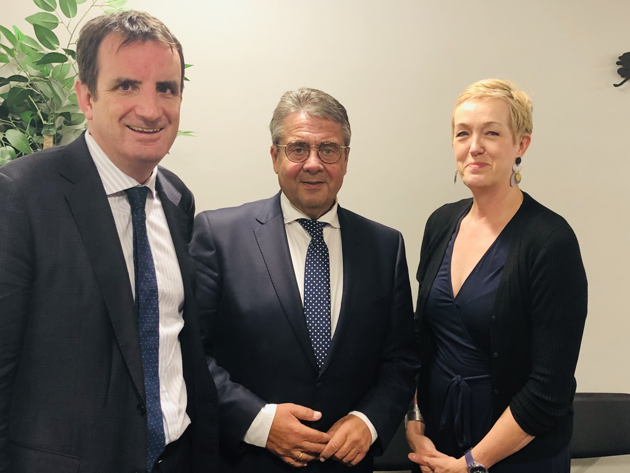 Der zentrale Auftrag der Atlantik-Brücke ist und bleibt es, gerade in diesen schwierigen Zeiten, auf der vorpolitischen Ebene die Gesprächskanäle zu erhalten und den vertrauensvollen und zuweilen auch unbequemen Dialog fortzusetzen. Sigmar Gabriels zweite Antrittsreise als neuer Vorsitzender der Atlantik-Brücke führte uns zum Tag der Deutschen Einheit nach New York und Washington. Die Reise begann mit einem Empfang über den Dächern Manhattans mit Mitgliedern und Young Leader-Alumni der Atlantik-Brücke. Gastgeber war Benjamin Vogt, Senior Managing Director bei Serengeti Asset Management und Präsident der Friends of Atlantik-Brücke in New York. Beim traditionellen Empfang am Vorabend des Tags der Deutschen Einheit im New Yorker Central Park traf Gabriel mit UN-Botschafter Christoph Heusgen, dem Generalkonsul in New York, David Gill, sowie zahlreichen Vertretern der UN und der New Yorker transatlantischen Community zusammen.