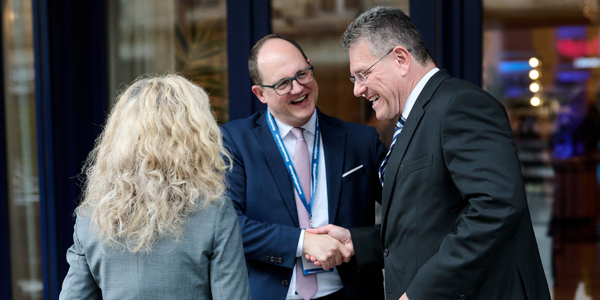 Auf europäischer Seite reflektierte EU-Handelskommissar Maroš Šefčovič über eine grundlegende Transformation: Europa, so argumentierte er, sei als Friedensprojekt gestartet, müsse nun aber seine Sicherheits- und Verteidigungspolitik angesichts rasanter geopolitischer Veränderungen neu bewerten. Er betonte die Bedeutung der USA als strategischen Partner, nicht nur durch erhöhte Verteidigungsinvestitionen, sondern auch durch Attraktivitätssteigerung des europäischen Verteidigungssektors für Investoren. Šefčovič stimmte Whitakers Einschätzung zu, dass ohne nachhaltiges Wirtschaftswachstum ein Staat nicht 5 Prozent seines BIP in Verteidigung investieren könne – und dass die Förderung eines Klimas für Innovation wesentlich für wirtschaftliche und sicherheitspolitische Widerstandskraft sei.