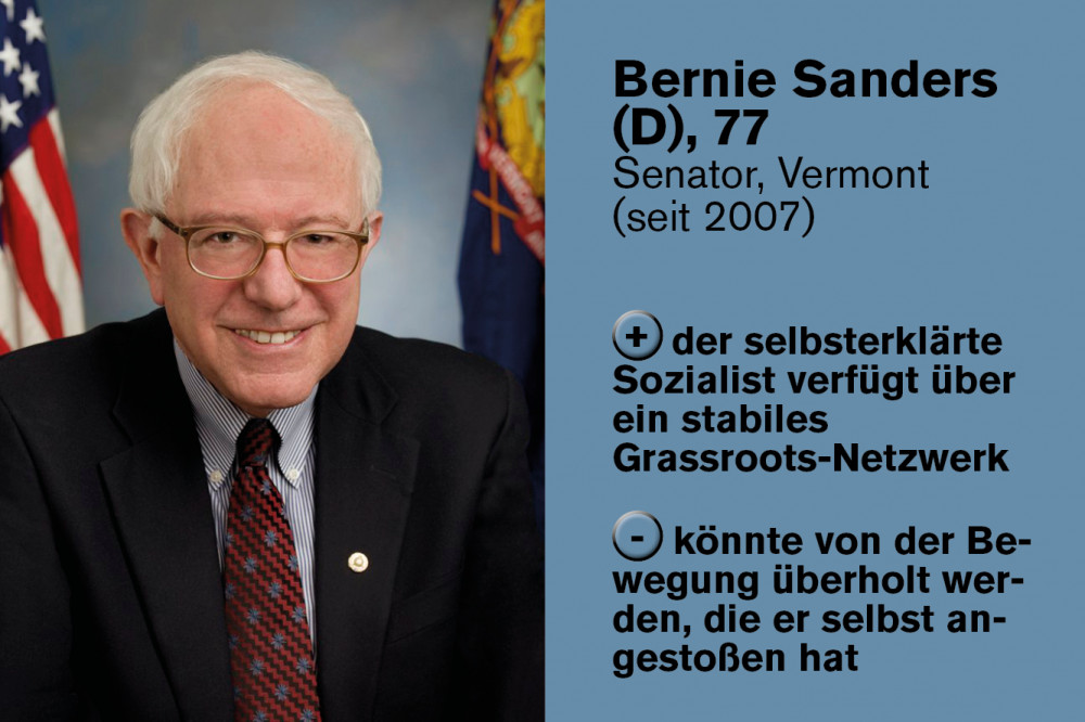 Sanders‘ Stärke liegt in seiner Strahlkraft als Kultfigur und in der Mobilisierung eines weit verzweigten Grassroots-Netzwerks. Andererseits könnte er seinem eigenen Erfolg zum Opfer fallen und seine Sonderstellung in dem gewachsenen Feld progressiver Mitbewerber verlieren. Schließlich hängen seine Chancen auch davon ab, ob sich die Demokratische Partei entscheidet, einen allgemeinen progressiven Kurs einzuschlagen.